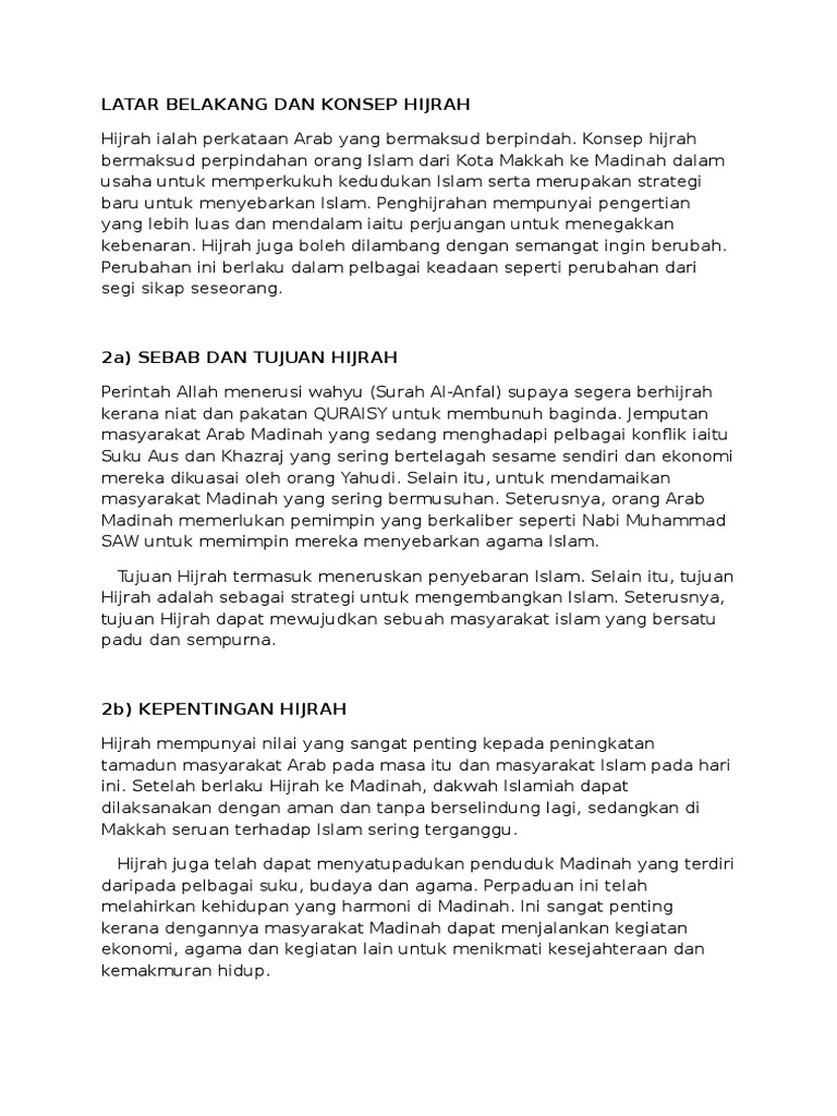 Orang biasanya menempuh perjalanan darat untuk pergi ke madinah, baik dari jeddah maupun dari makkah. Huraikan peristiwa hijrah nabi muhammad s.a.w dan umat islam dari makkah ke. Para pembesar kaum quraisy dan sebagian besar masyarakat makkah menganggap rasulullah shallallahu 'alaihi wa sallam sebagai. Perpindahan orang islam dari makkah ke madinah dalam usaha memperkukuh kedudukan islam serta strategi baru myebarkan islam. Mereka sangat antusias menunggu dan mengharap kedatangan ketiga :